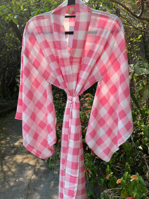 Kimono longo xadrez rosa