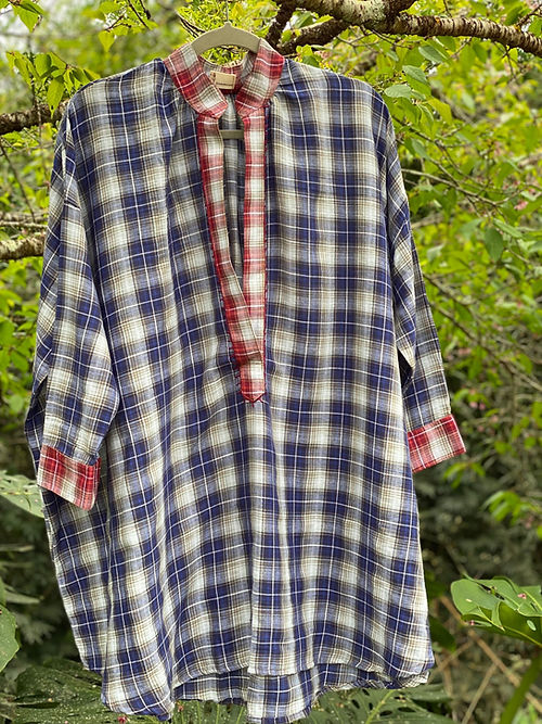 modelo long em FLANELA 100 % algodão fininha em xadrez qzul