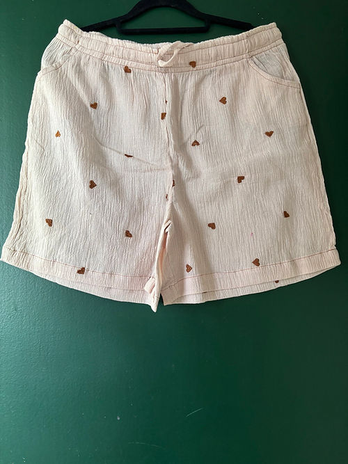 Conjunto short + Camisão clássico gaze de algodão bege coração
