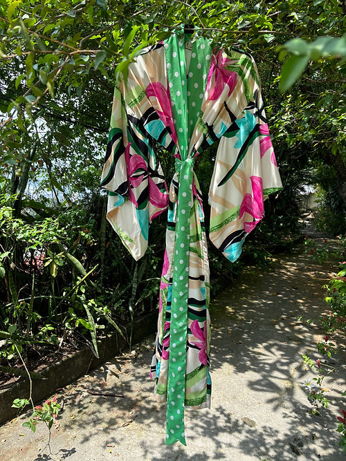 Kimono longo poá rosa