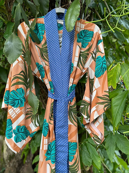 Kimono longo ocre folhas